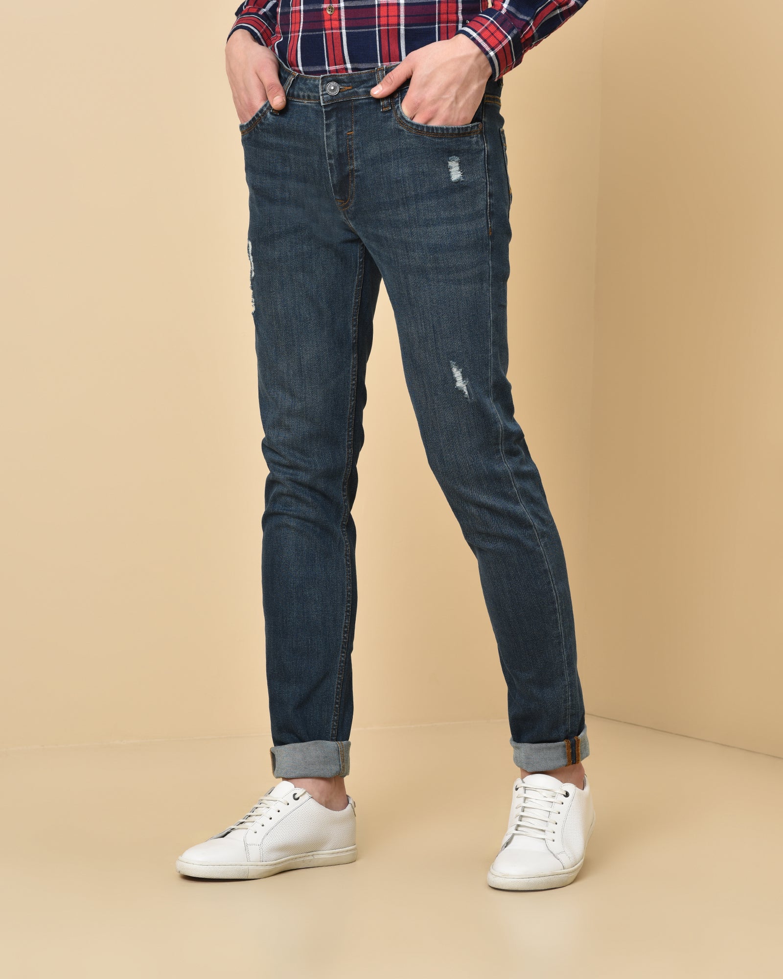 The Ultimate Skinny Fit For Men, Our Indigo Skinny Fit Mid Wash With Slight Damages,Is Cut For Contemporary Style And Infused With Stretch For Extra Mobility.