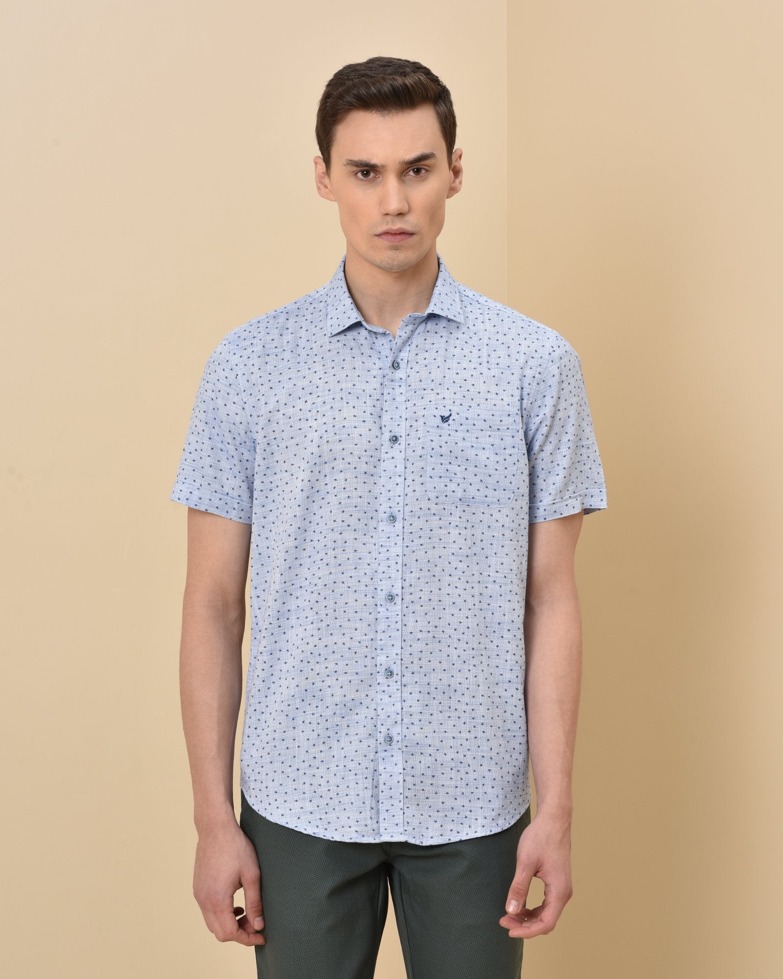This Seasons Go Out With A Smart, Mordern,Fashionable Quirky Printed Slim Fit Shirt. This Button Up Has A Classic Look That Works With Just About Any Denim In Your Closet. The Fabric Is Folded Back Over And Sewn With A Fused Interlinging To Give It That Crisp,Dressy Appeal. You Can Wear This Shirt In All Occasions.